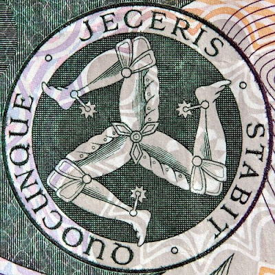 Эта штука называется трискелион, на острове Мэн она видимо оказалась с Сицилии (норманы и т.д.), и интерпретируется как Ванька-встанька: "whichever way you throw me, I will stand".